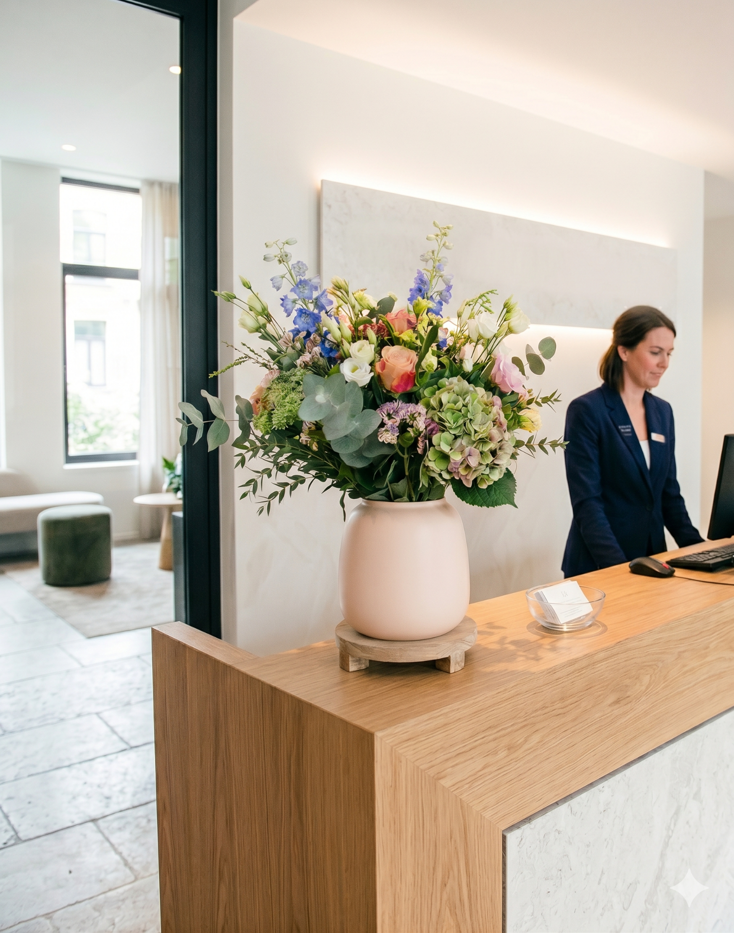 Bij Flora & Kamiel geloven we dat bloemen meer doen dan alleen een ruimte opvullen. Ze creëren een sfeer van gastvrijheid, verhogen de creativiteit op de werkvloer en zorgen voor een warm welkom bij klanten en relaties. Of het nu gaat om een strak kantoor, een sfeervol restaurant of een drukbezochte praktijk; wij brengen de natuur naar binnen.