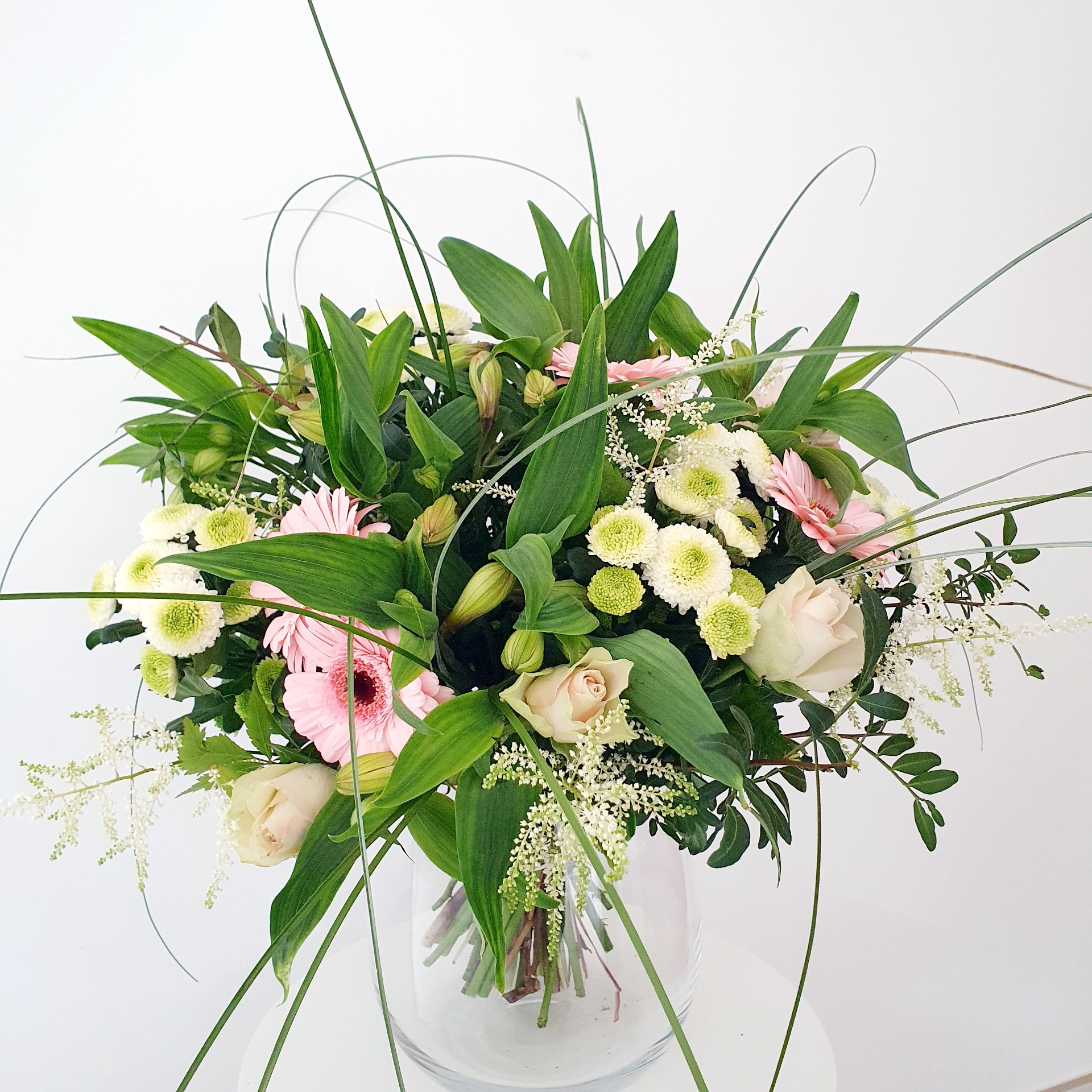 Dit levendige boeket brengt de frisheid van de natuur in huis met een kleurrijke mix van rozen, gerbera's en charmante bloemen. De speelse combinatie van fijne bloemen en lange grassen geeft het arrangement een luchtig en authentiek veldkarakter. Een veelzijdig boeket dat met zijn warme tinten en natuurlijke vormen elke ruimte direct opfleurt.