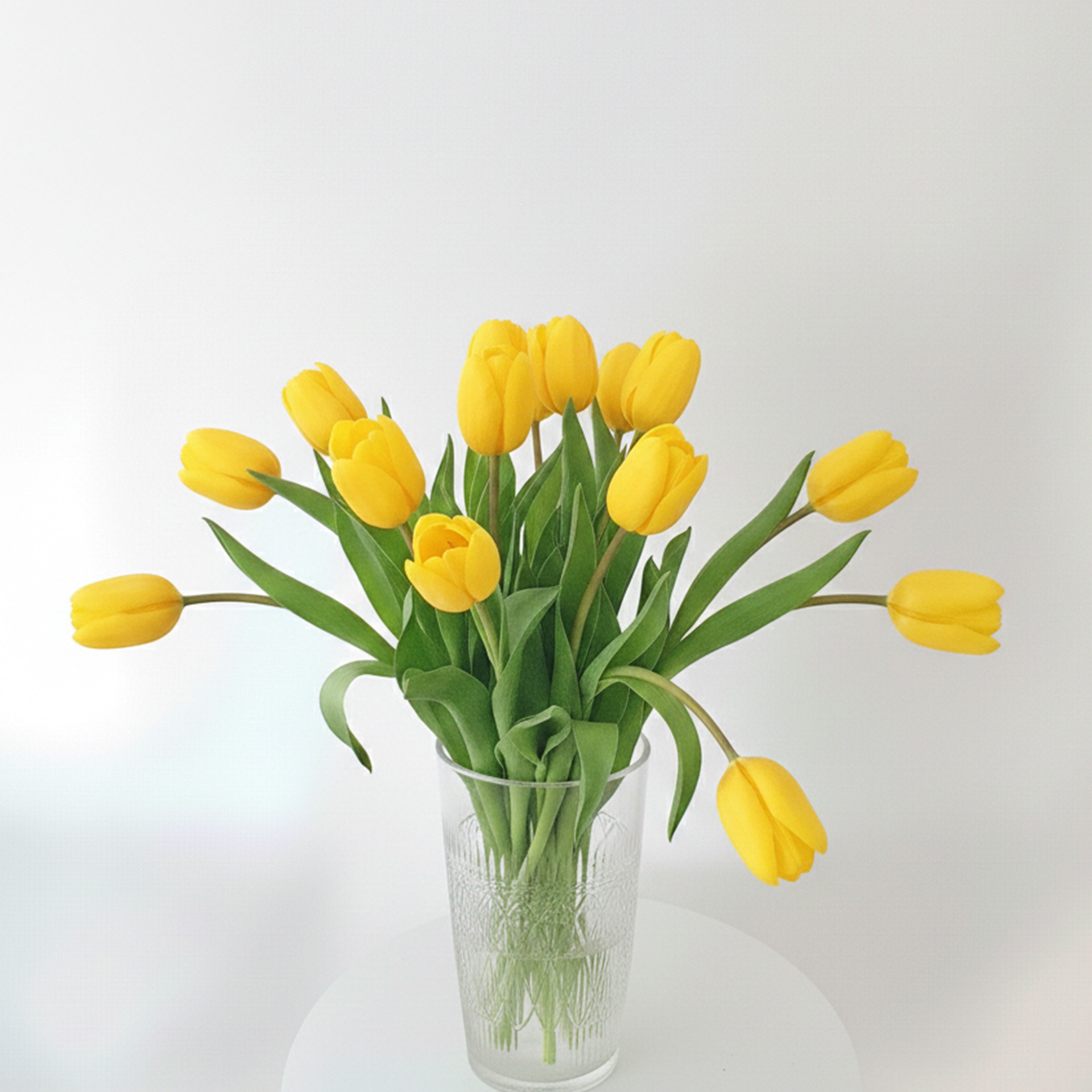 Breng de lente naar binnen met dit fijne boeket van tien zijdezachte, roze of gele tulpen, vers van de kweker. Een bescheiden maar prachtig gebaar, of gewoon de perfecte traktatie voor je eigen keukentafel. Elke week zijn er andere kleuren te verkrijgen. Contacteer ons om te zien welke kleuren er deze week beschikbaar zijn.